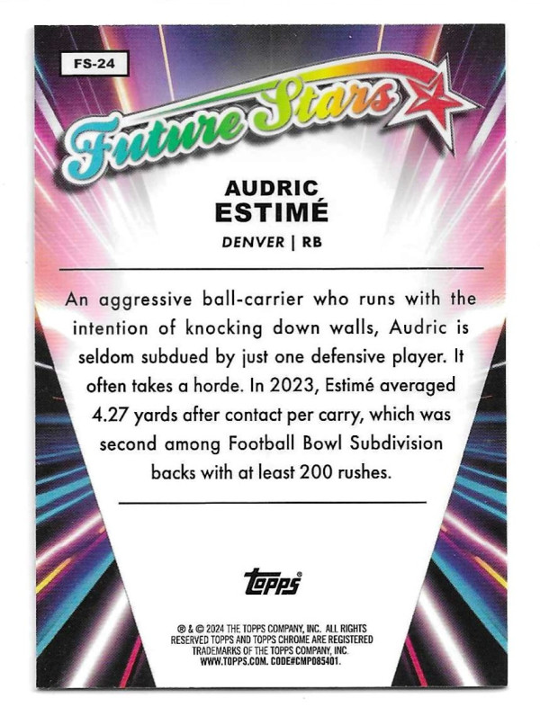 2024 Topps Chrome Future Stars #FS-24 Audric Estime (RC) - Denver Broncos