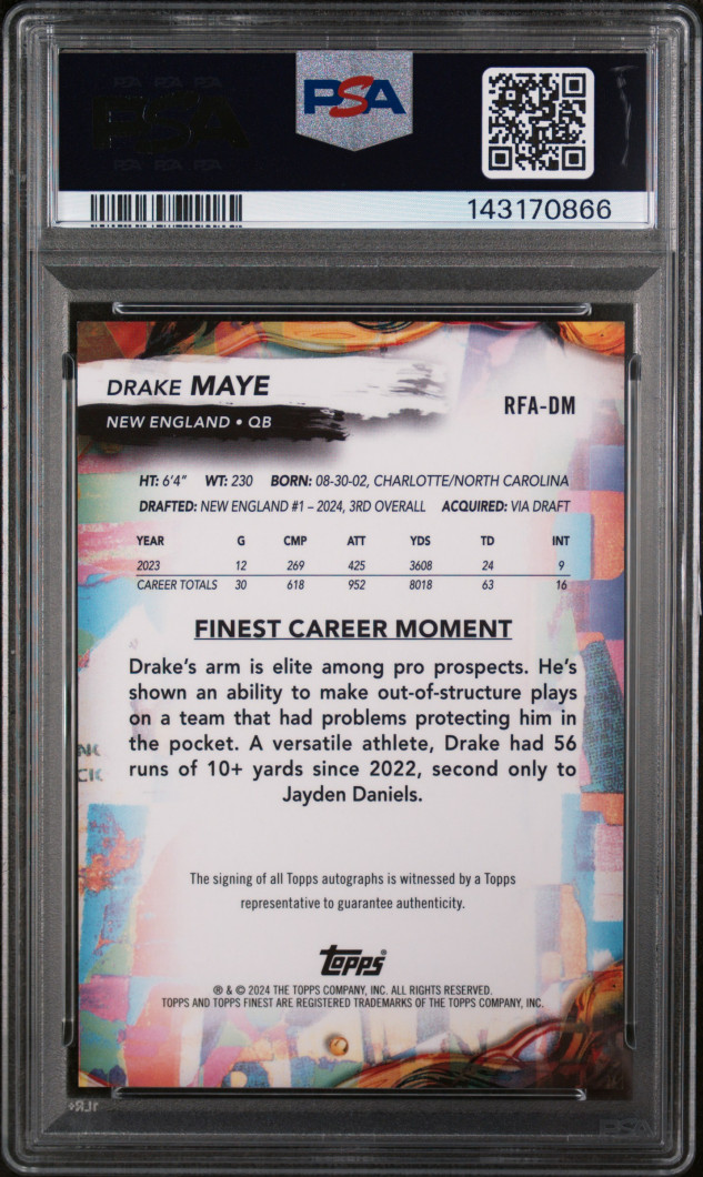 2024 Topps Finest Rookie Finest Autographs Drake Maye On Card Auto