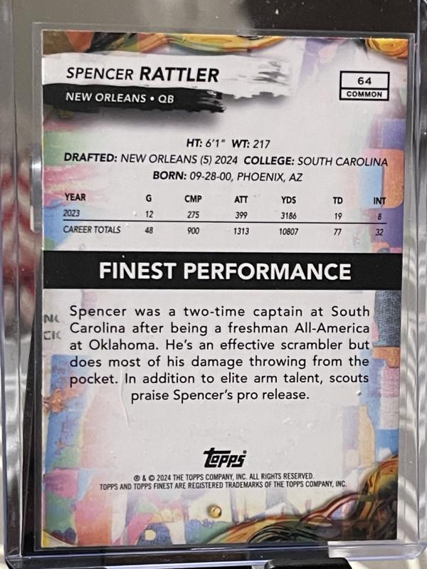 2024 Topps Finest - Spencer Rattler #64 (RC)