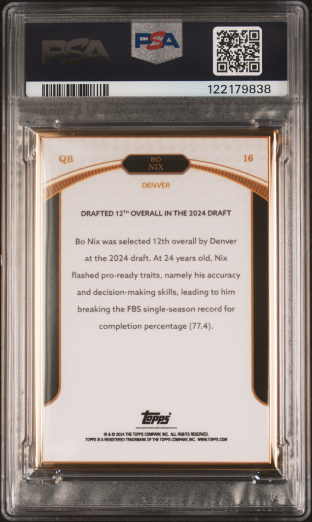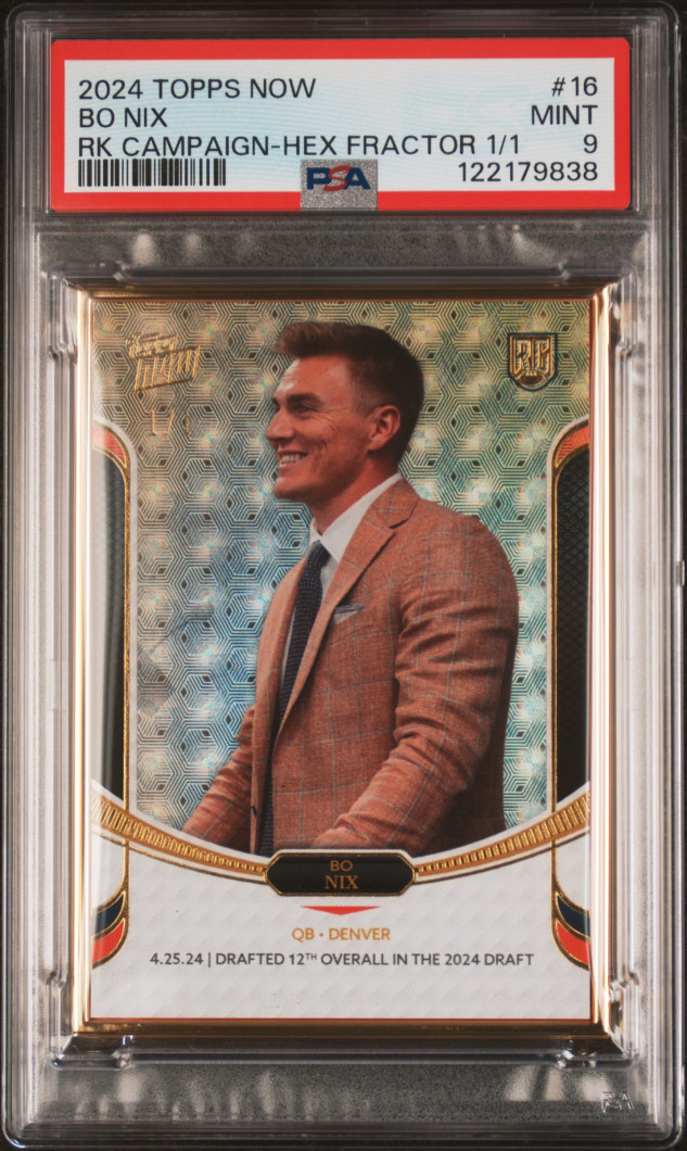 2024 Topps Now Rookie Campaign Bo Nix Hex Fractor 1/1 PSA 9