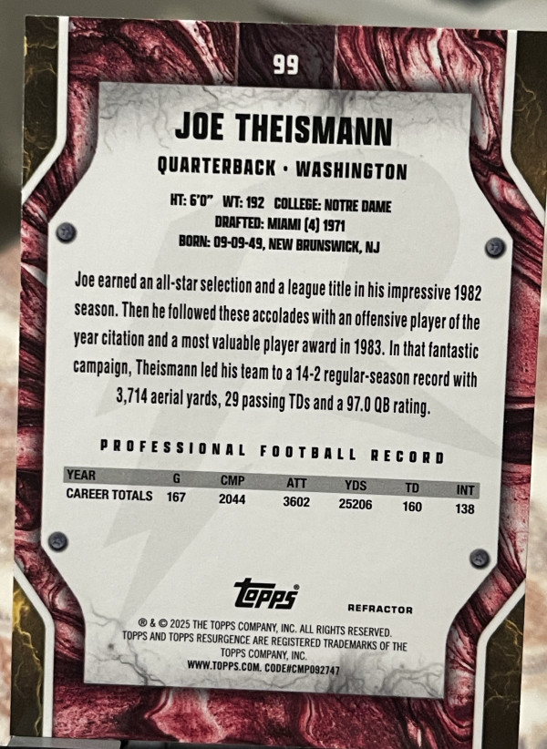 2024 Topps Resurgence Joe Theismann #99 Refractor
