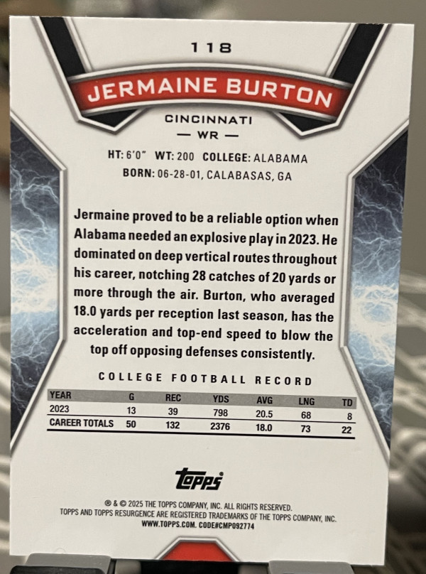 2024 Topps Resurgence - Rookies Jermaine Burton #118 (RC)