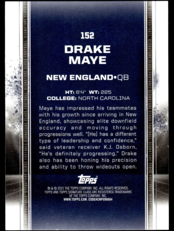 2024 Topps Signature Class Drake Maye Rookie New England Patriots #152 Blue