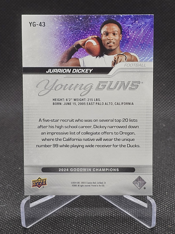 2024 Upper Deck Goodwin Champions Young Guns #YG43 Jurrion Dickey