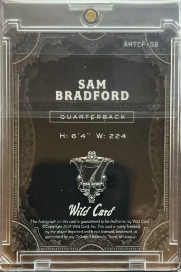 You are purchasing a 2024 Wild Card 7 Card Studs Sam Bradford #AH7CF-SB 1/1. You will receive the exact item in the photographs. Thank you for looking.