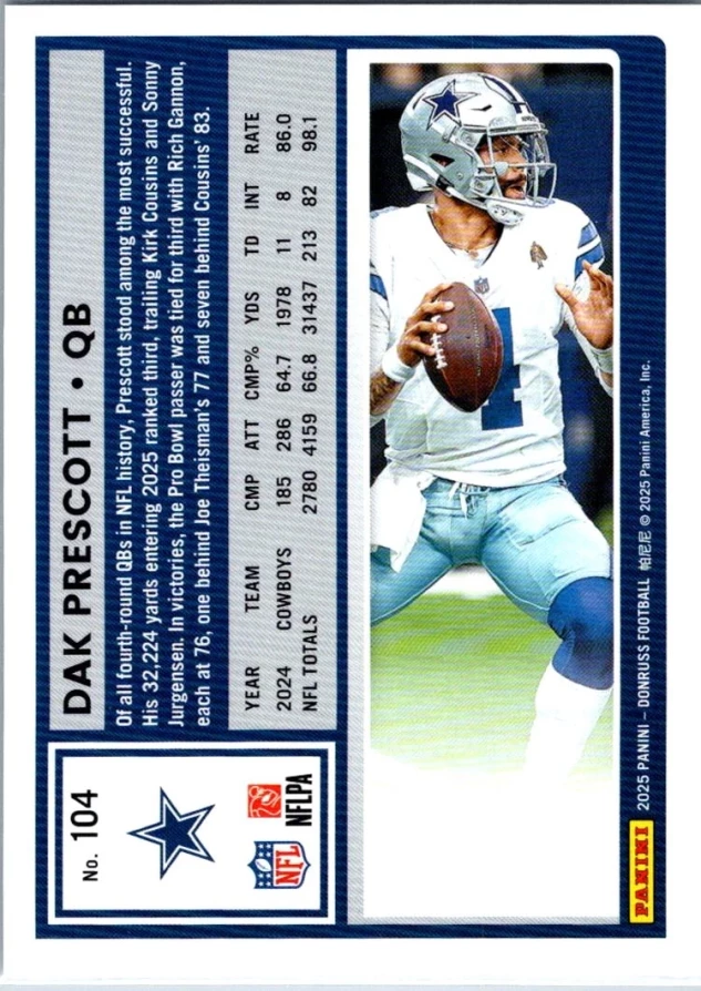 This is a nice example of a 2025 Donruss #104 Dak Prescott