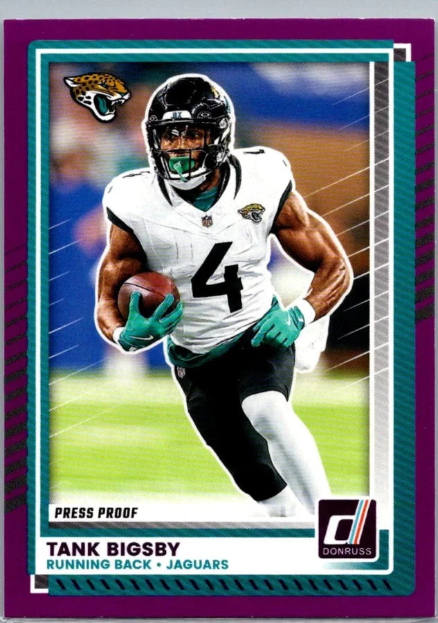 This is a nice example of a 2025 Donruss #290 Tank Bigsby Press Proofs Purple