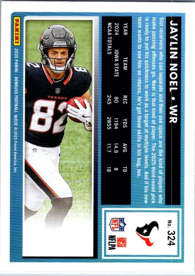This is a nice example of a 2025 Donruss #324 Jaylin Noel