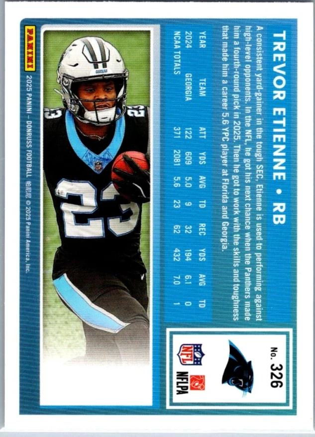 This is a nice example of a 2025 Donruss #326 Trevor Etienne
