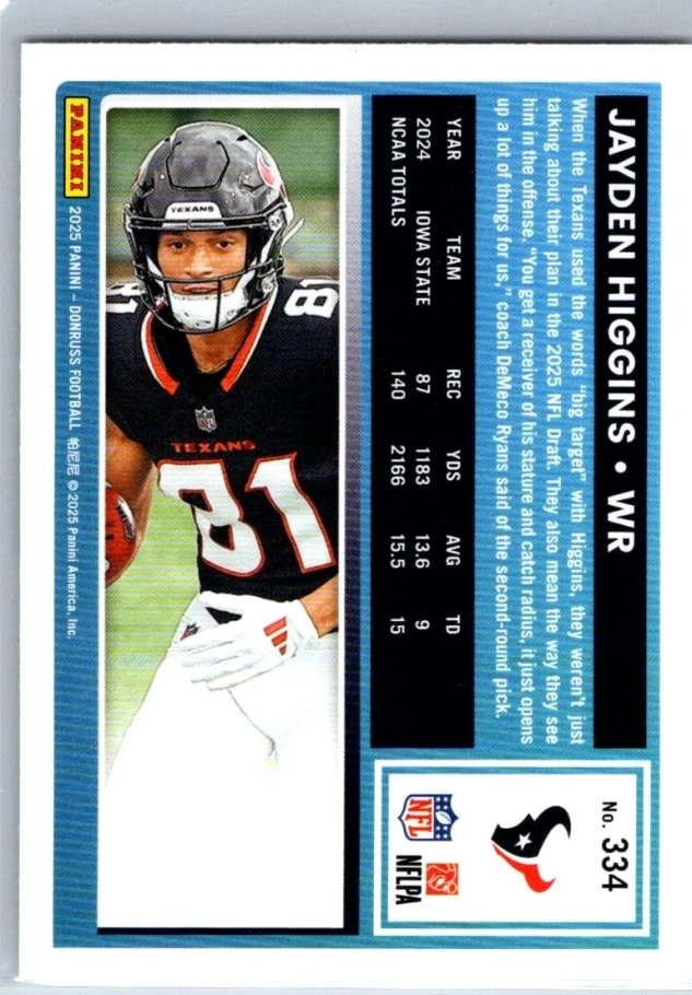 This is a nice example of a 2025 Donruss #334 Jayden Higgins