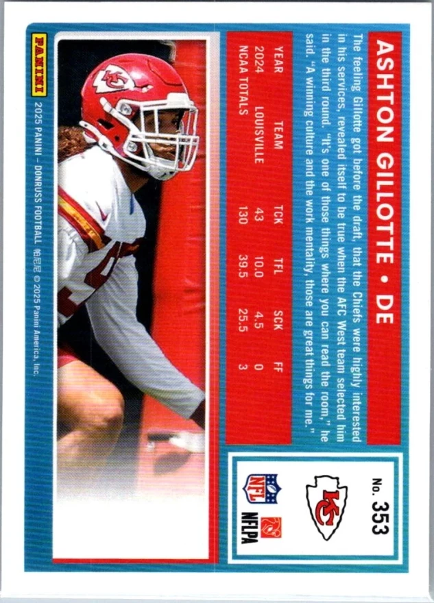 In 2025 Ashton Gillotte played for the Kansas City Chiefs.
