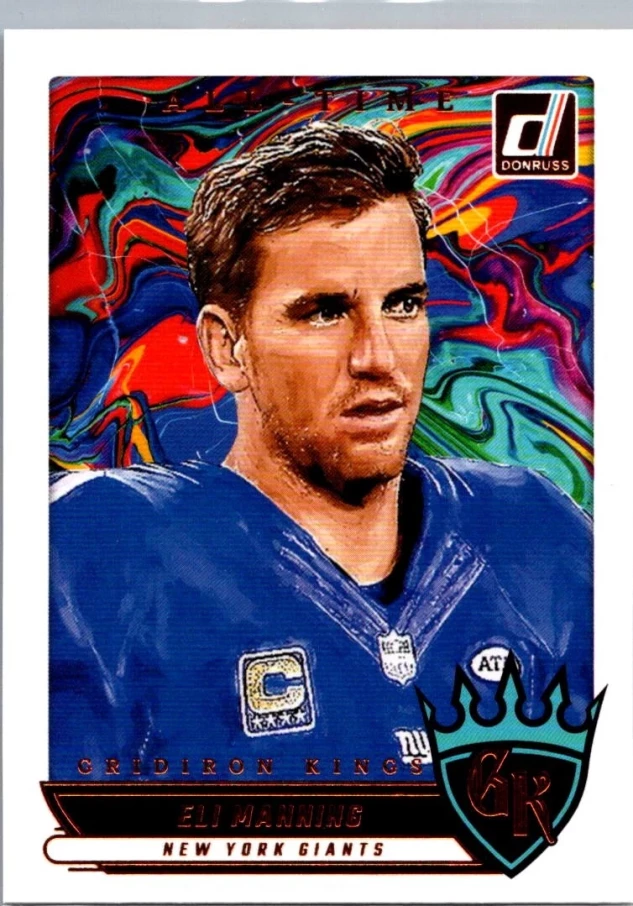 This is a nice example of a 2025 Donruss #ATGK-EMG Eli Manning All-Time Gridiron Kings