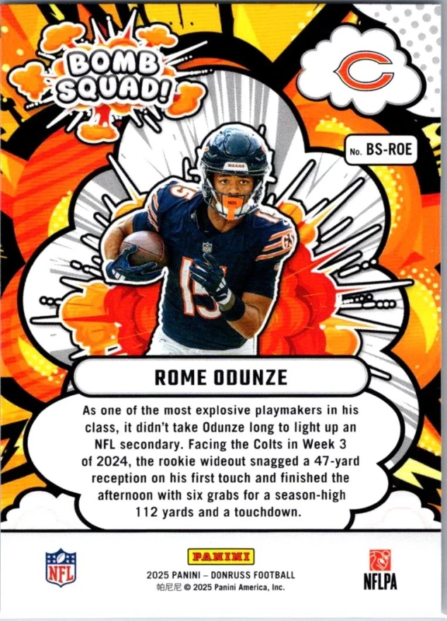 This is a nice example of a 2025 Donruss #BS-ROE Rome Odunze Bomb Squad