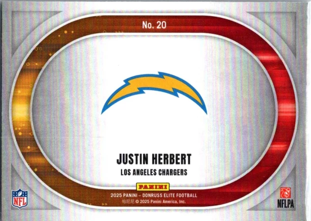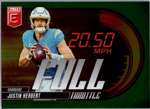 This is a nice example of a 2025 Donruss Elite #20 Justin Herbert Full Throttle Green