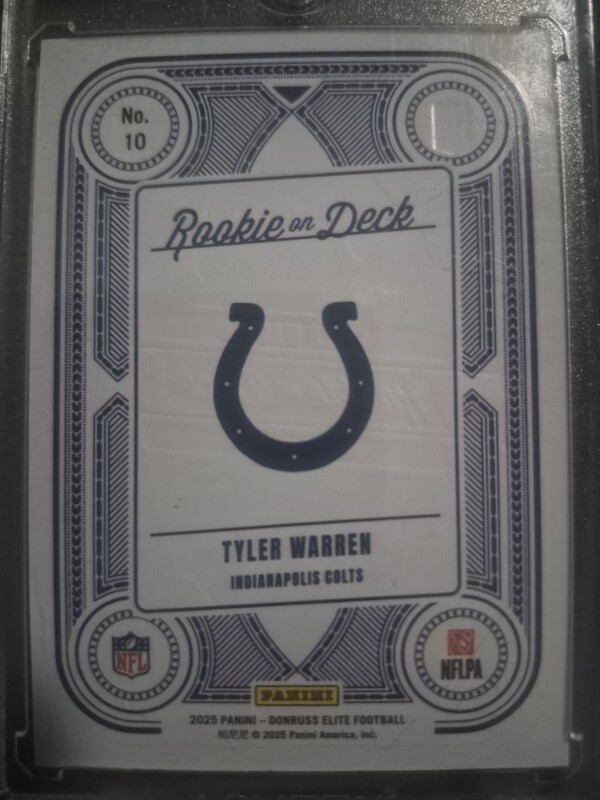 2025 Donruss Elite Rookie On Deck Tyler Warren Blue 01/75