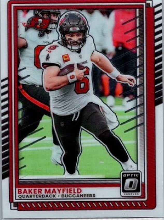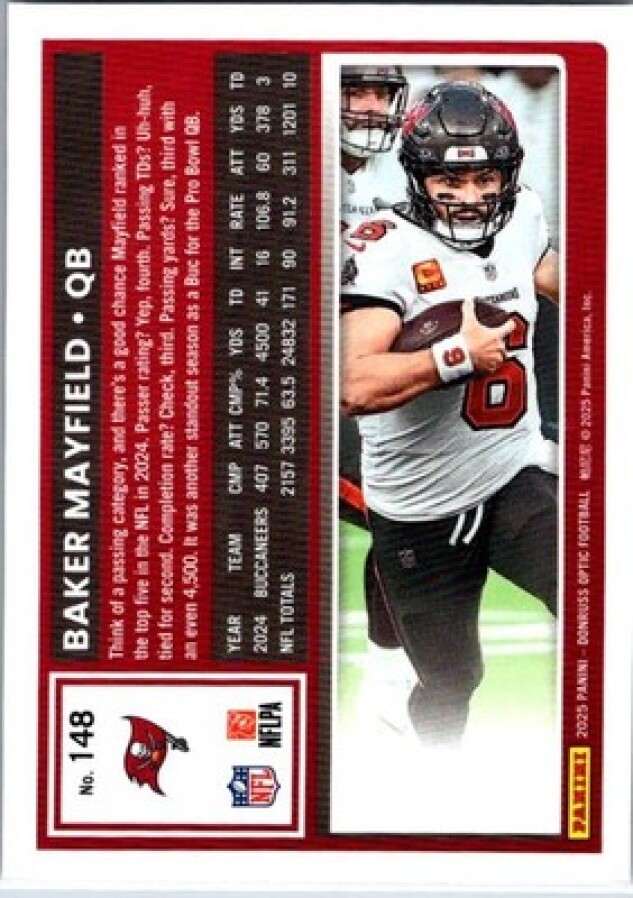 This is a nice example of a 2025 Donruss Optic #148 Baker Mayfield