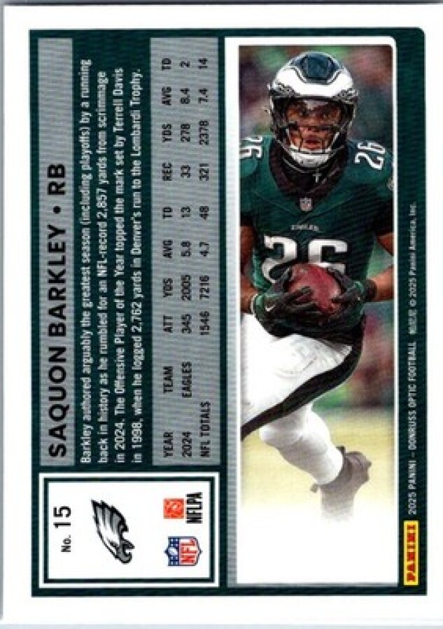 This is a nice example of a 2025 Donruss Optic #15 Saquon Barkley
