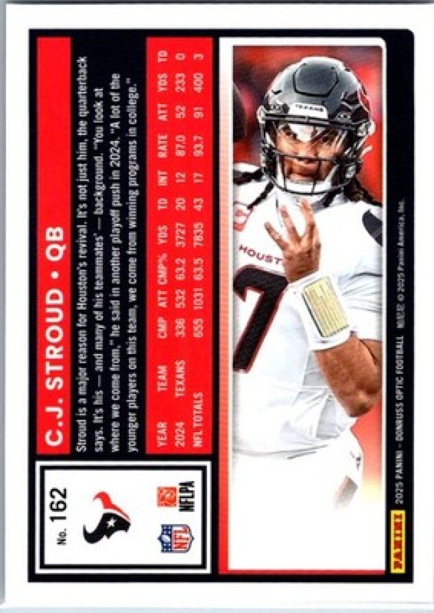 This is a nice example of a 2025 Donruss Optic #162 C.J. Stroud