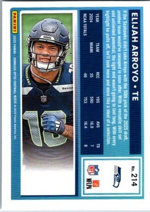 This is a nice example of a 2025 Donruss Optic #214 Elijah Arroyo