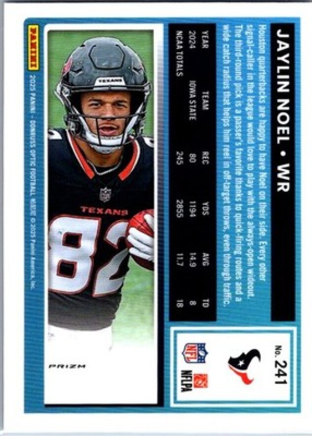 This is a nice example of a 2025 Donruss Optic #241 Jaylin Noel Blue Hyper
