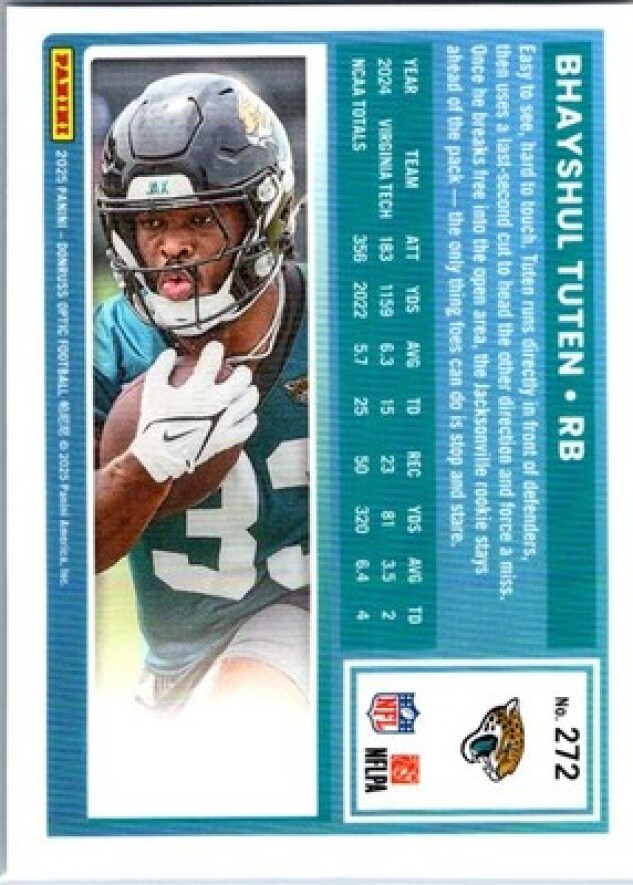 This is a nice example of a 2025 Donruss Optic #272 Bhayshul Tuten