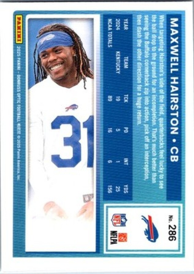 In 2025 Maxwell Hairston played for the Buffalo Bills.