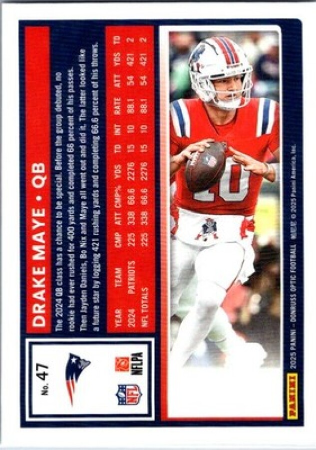 This is a nice example of a 2025 Donruss Optic #47 Drake Maye