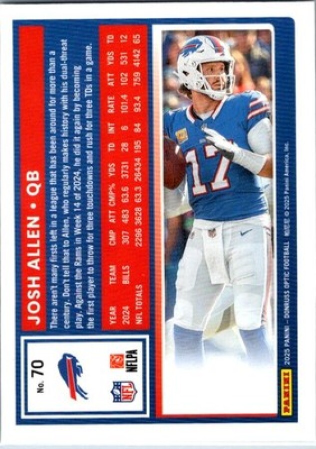This is a nice example of a 2025 Donruss Optic #70 Josh Allen