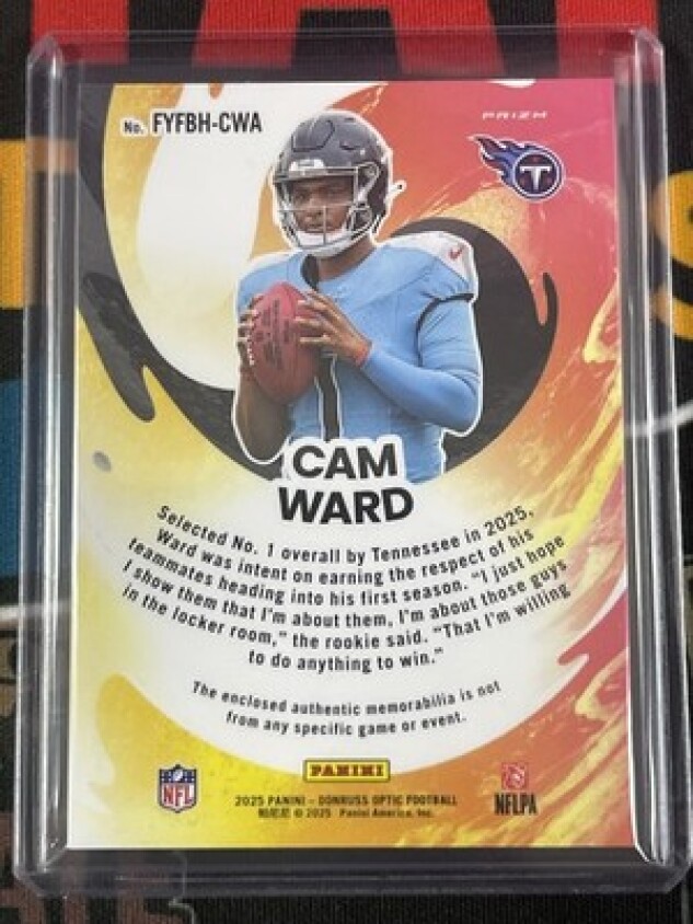 This is a nice example of a 2025 Donruss Optic #FYFBH-CWA Cam Ward First Year Fresh Blue Hyper