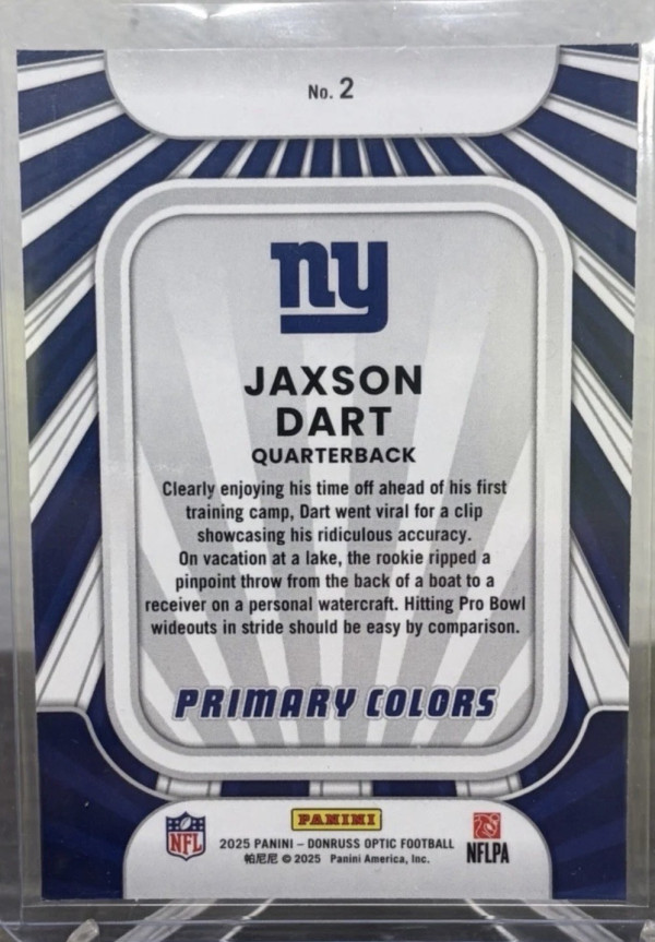 2025 Donruss Optic Jaxson Dart Rookie Primary Colors #2