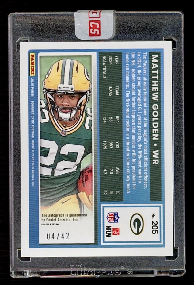 2025 Donruss Optic - Matthew Golden #205 RATED ROOKIE RPS AUTOGRAPH On Card SSP /42 PURPLE STARS PRIZM