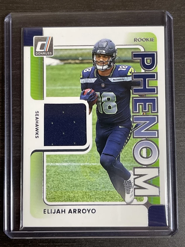 This is a nice example of a 2025 Donruss #RPJ-EAO Elijah Arroyo Rookie Phenom Jerseys