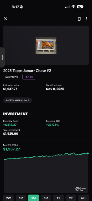 This is a beauty! With a healthy Burrow in 2026, Chase is primed to have another huge year. Card Ladder Estimated Value is over $1900 and climbing! Get this while you still can at a great price!