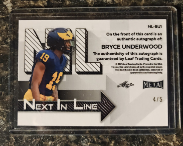 2025 Leaf Metal Next In Line Bryce Underwood #4/5.