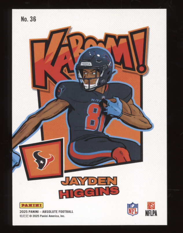 You are purchasing a 2025 Panini Absolute Football Kaboom! Jayden Higgins #36 RC. You will receive the exact item in the photographs. Thank you for looking.