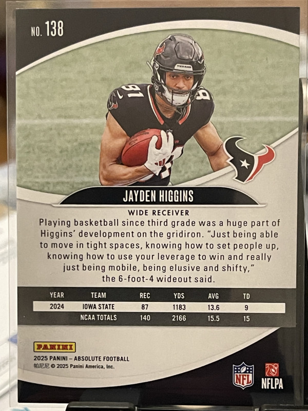 2025 Panini Absolute - Rookies Jayden Higgins #138 (RC)