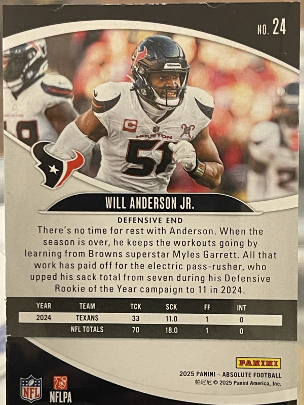 2025 Panini Absolute - Will Anderson #24