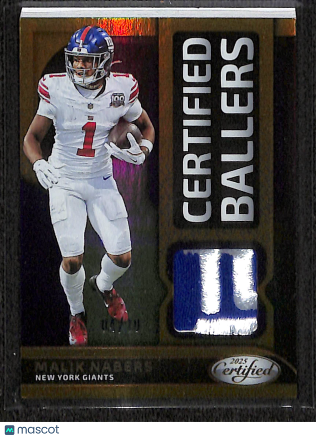 2025 Panini Certified Certified Ballers Malik Nabers CBM-MNS Gold Logo Patch /10