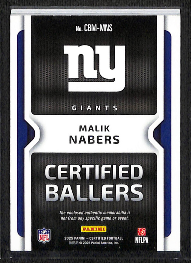 You are purchasing a 2025 Panini Certified Certified Ballers Malik Nabers #CBM-MNS Gold Logo Patch 4/10. You will receive the exact item in the photographs. Thank you for looking.