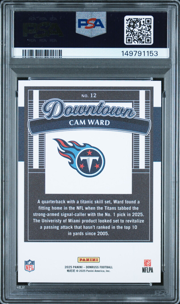 You are purchasing a 2025 Panini Donruss Downtown Cam Ward #12 PSA 10. You will receive the exact item in the photographs. Thank you for looking.