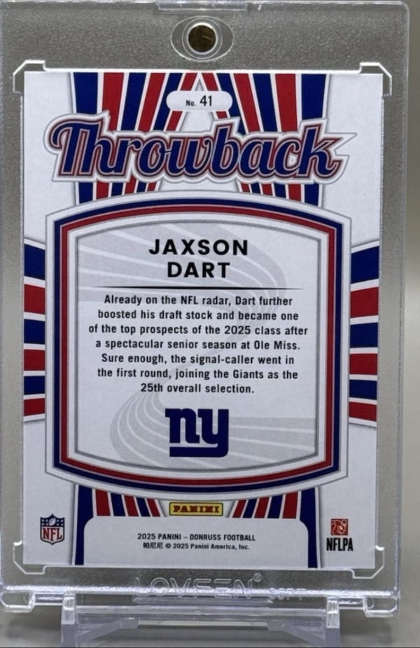 2025 Panini Donruss JAXSON DART #41 Rated Rookie Throwback - Giants NFL RC