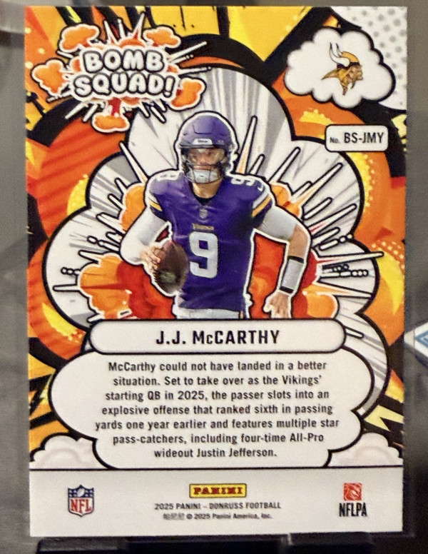2025 Panini Donruss J.J. McCarthy Bomb Squad Insert Minnesota Vikings #BS-JMY