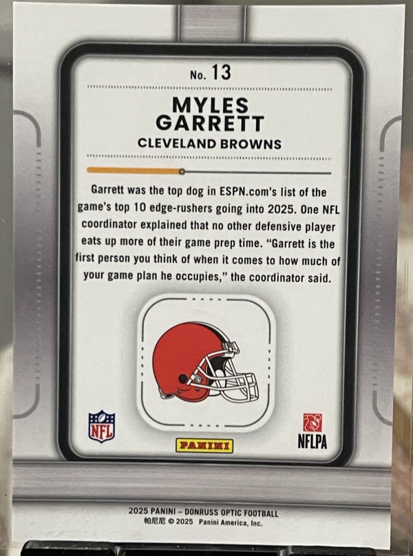 2025 Panini Donruss Optic Play Action Myles Garrett #13 Cleveland Browns