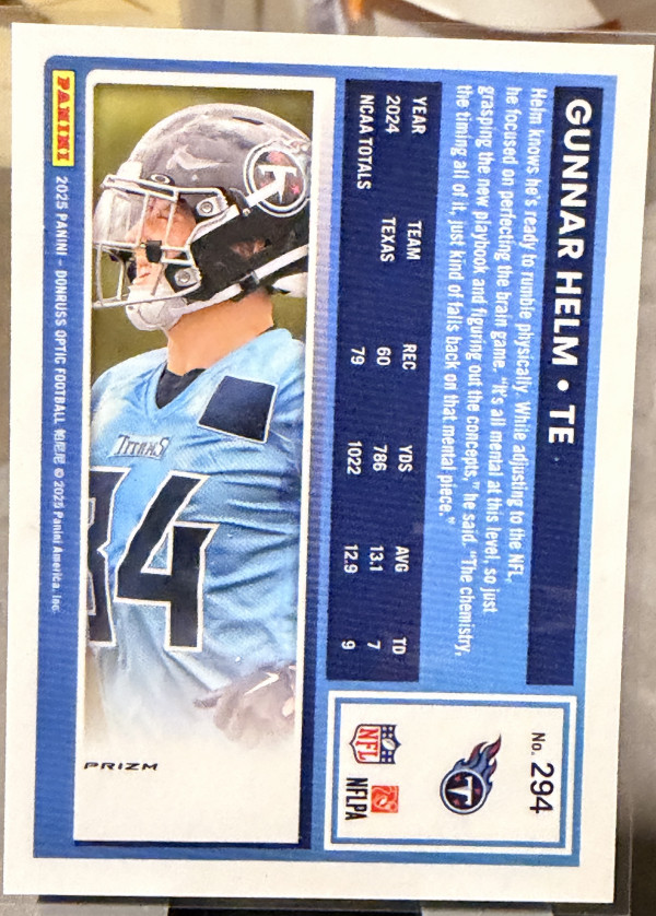 2025 Panini Donruss - Rated Rookie Gunnar Helm #371 Optic Preview Pink Prizm (RC)