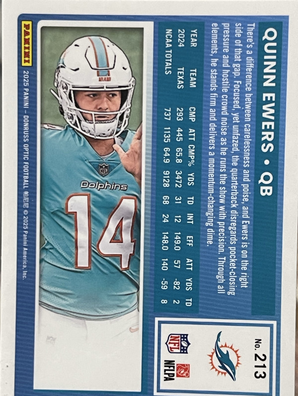 2025 Panini Donruss Rated Rookie Quinn Ewers #342 Optic Preview Holo Prizm (RC)