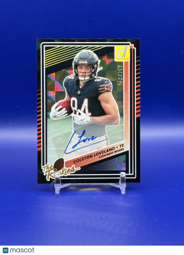Don’t miss out on this must-have 2025 Panini Donruss The Rookies Colston Loveland autographed card, featuring the exciting Chicago Bears rookie! This rare card is serial numbered out of just 299 and showcases a bold signature from Colston Loveland, making it a standout addition for any NFL or football card collector. Secure this highly sought-after collectible today and celebrate the future of the Bears!