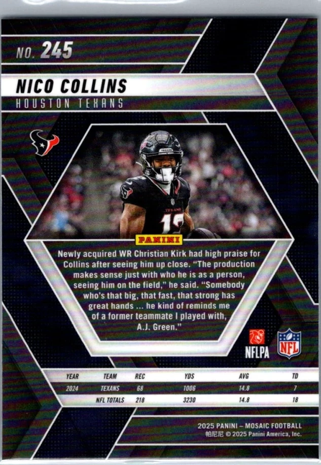 This is a nice example of a 2025 Panini Mosaic #245 Nico Collins