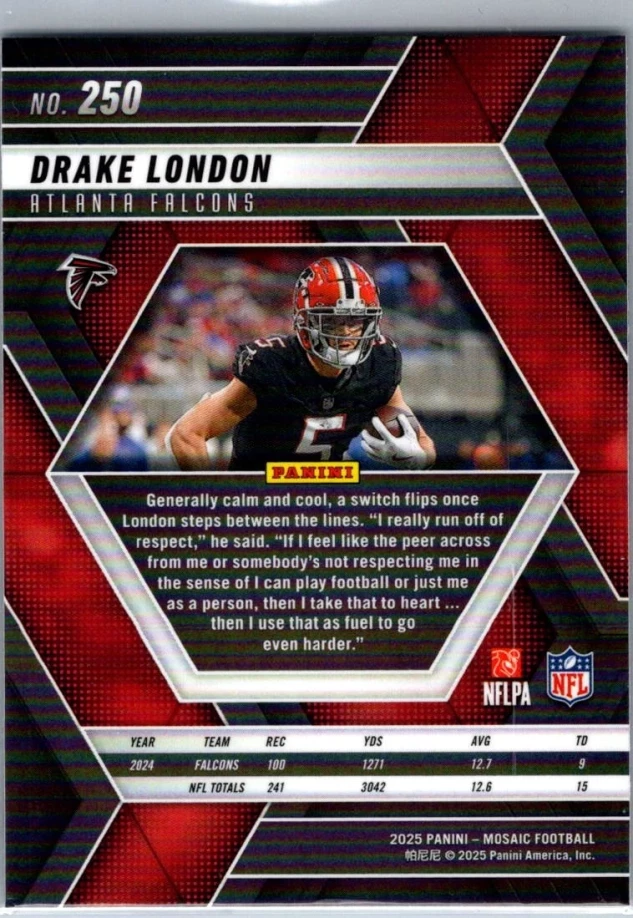 This is a nice example of a 2025 Panini Mosaic #250 Drake London