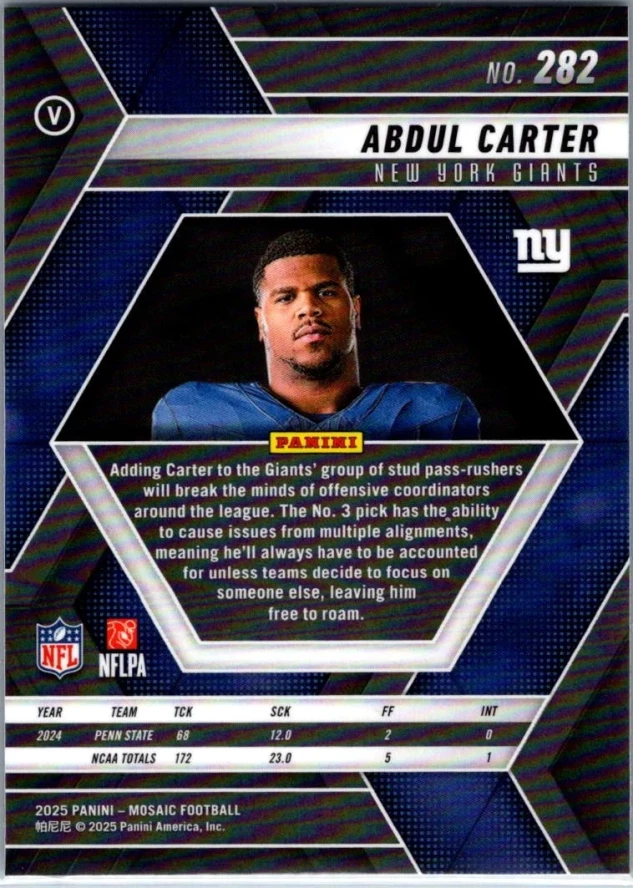 In 2025 Abdul Carter played for the New York Giants.