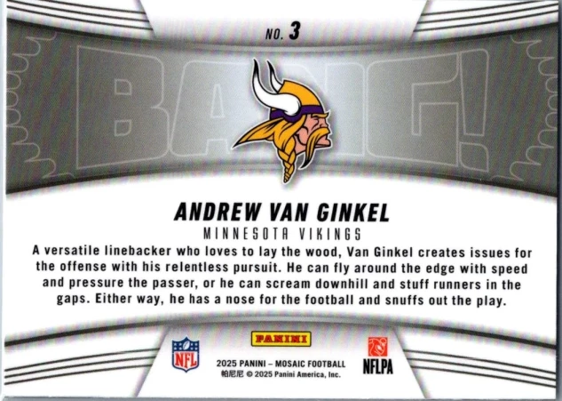 This is a nice example of a 2025 Panini Mosaic #3 Andrew Van Ginkel Bang! Mosaic